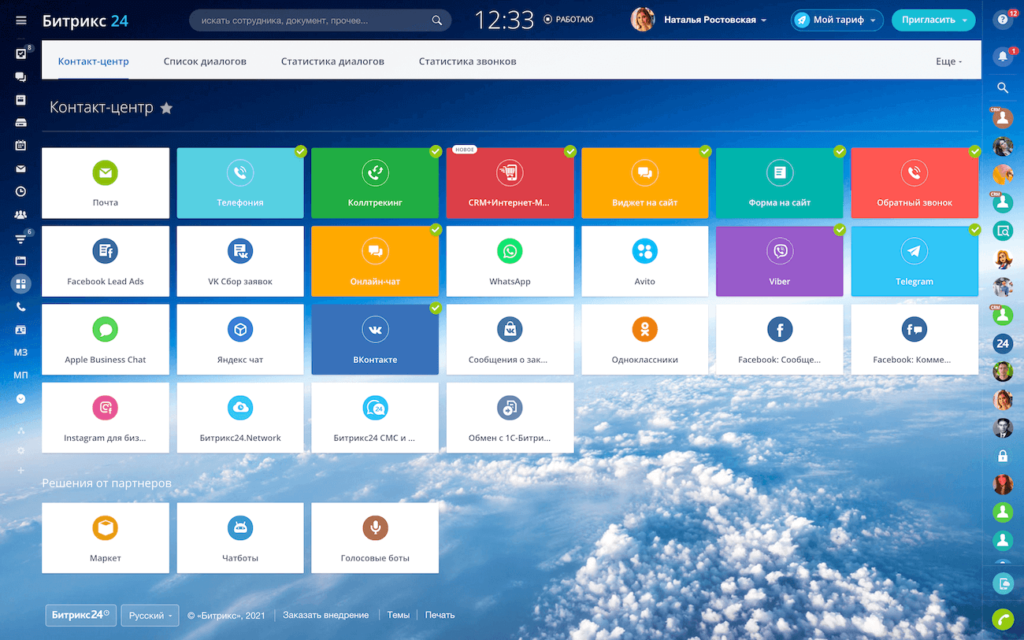 Используйте WhatsApp для общения с клиентами. Мессенджер автоматически подключается к виджету на сайте и сразу готов к работе – вам не нужно ничего настраивать. Число диалогов неограниченно, всё сохраняется в CRM. Входит в стоимость всех платных тарифов Битрикс24.