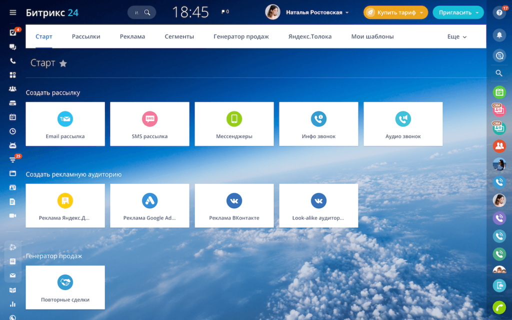 CRM-маркетинг поможет найти потенциальных клиентов, похожих на ваших покупателей, и быстро запустить рекламу. Рассылки e-mail, SMS, реклама с персональными предложениями под разные сегменты ваших клиентов усилят первичные и повторные продажи.