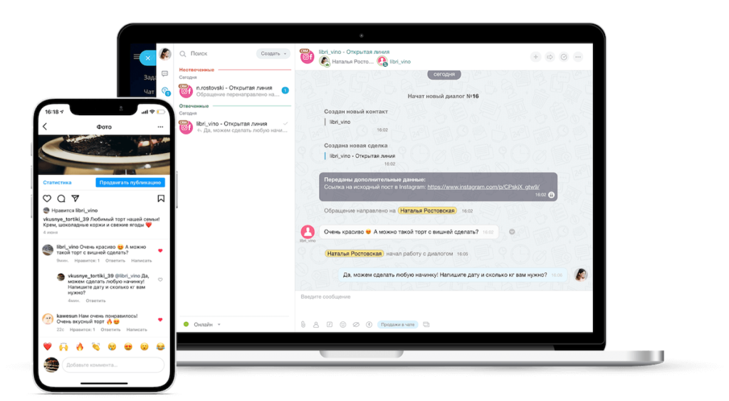 Получайте заказы из соцсетей, общайтесь с клиентами, организуйте оплату и доставку с помощью CRM.
