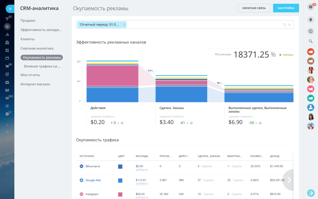 Сэкономьте рекламный бюджет с помощью Сквозной аналитики. Отчеты о рекламе покажут эффективность целой кампании, групп объявлений или слов. Сквозная аналитика умеет отключать рекламу, которая не приносит результат и тратит бюджет впустую.