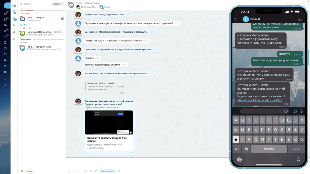 Если у клиента есть мессенджер, менеджер тут же увидит это и продолжит общение прямо там – проконсультирует, предложит дополнительные товары. Вы не пропустите ни одного вопроса и закроете еще больше сделок!